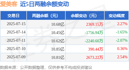 爱美客:7月15日融资买入6304.57万元,融资融券余额10.68亿元来源:网络 热度:2℃ 2025/7/16 9:50:33 广告位26:文章内页(全站) 证券之星消息,7月15日,爱美客(300896)融资买入6304.57万元,融资偿还3919.4万元,融资净买入2385.18万元,融资余额10.65亿元,近20个交易日中有12个交易日出现融资净买入。
