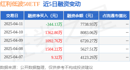 红利低波50ETF:4月11日融资买入358.06万元,融资融券余额7738.93万元